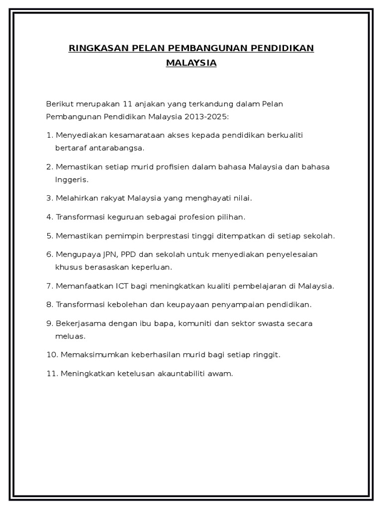 Ringkasan Pelan Pembangunan Pendidikan Malaysia Pdf